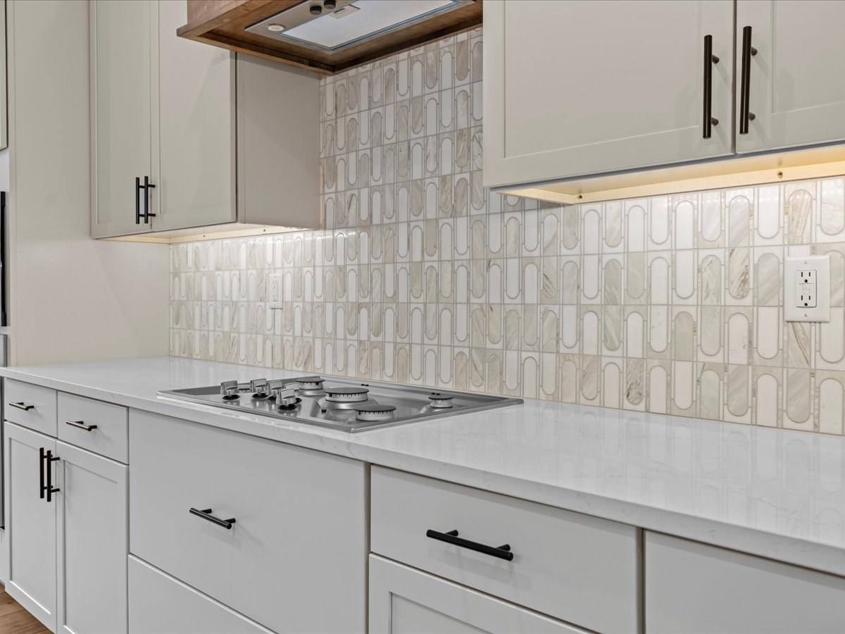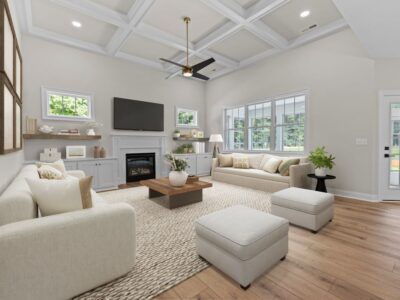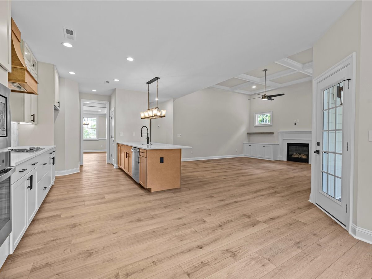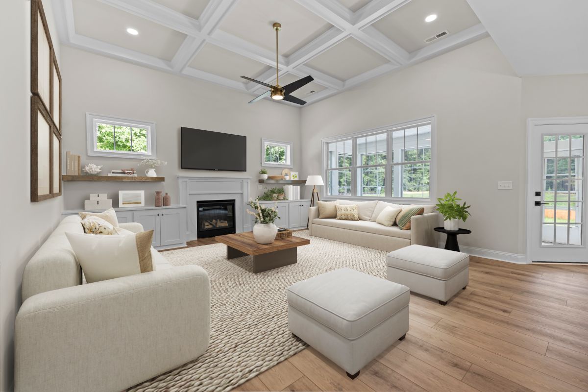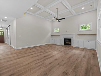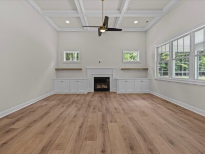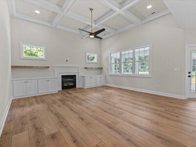 - Custom Family Room Built-ins with Gas Fireplace, Craftsman Mantle & Quartz Surround