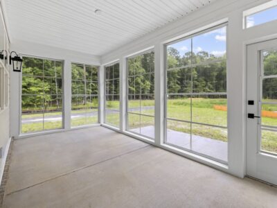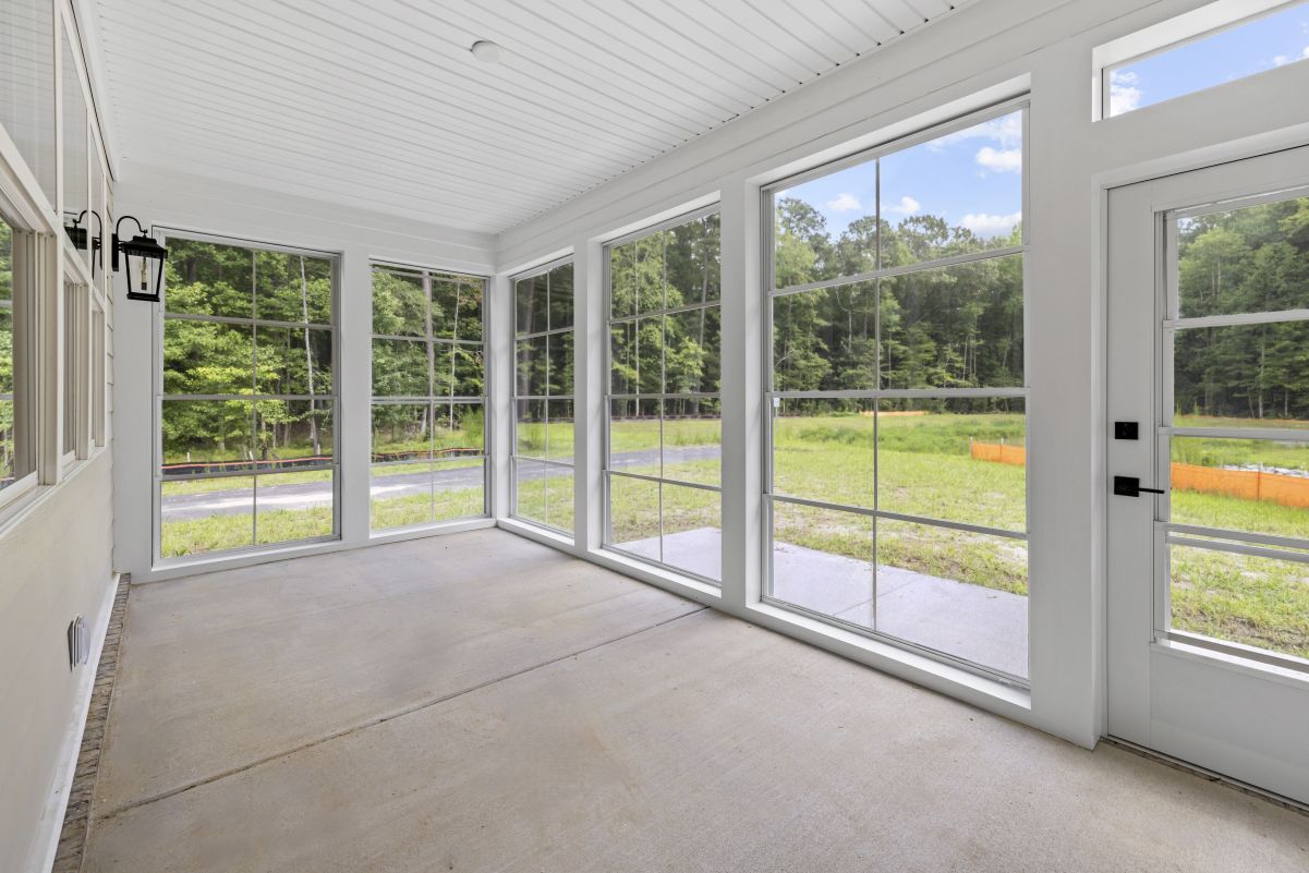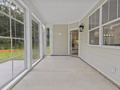 - Deep Covered Porch with EZE Breeze enclosure, Patio, and view of the woods.