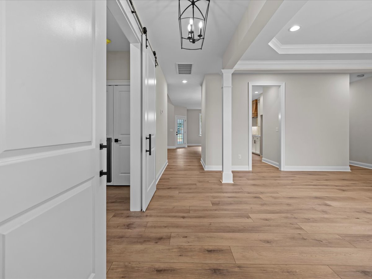 - Flooring: Hard surface in all main living areas on 1st floor, with Tile in Laundry and all Baths. Hardwood Stairs.