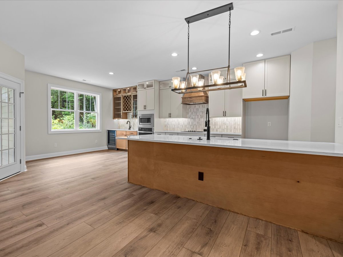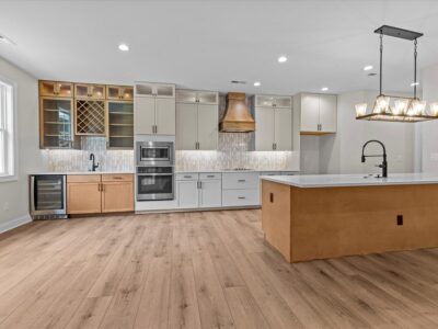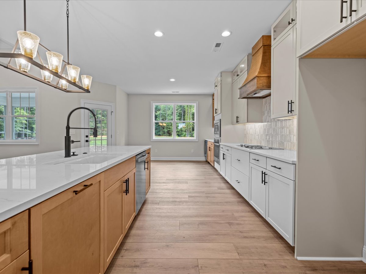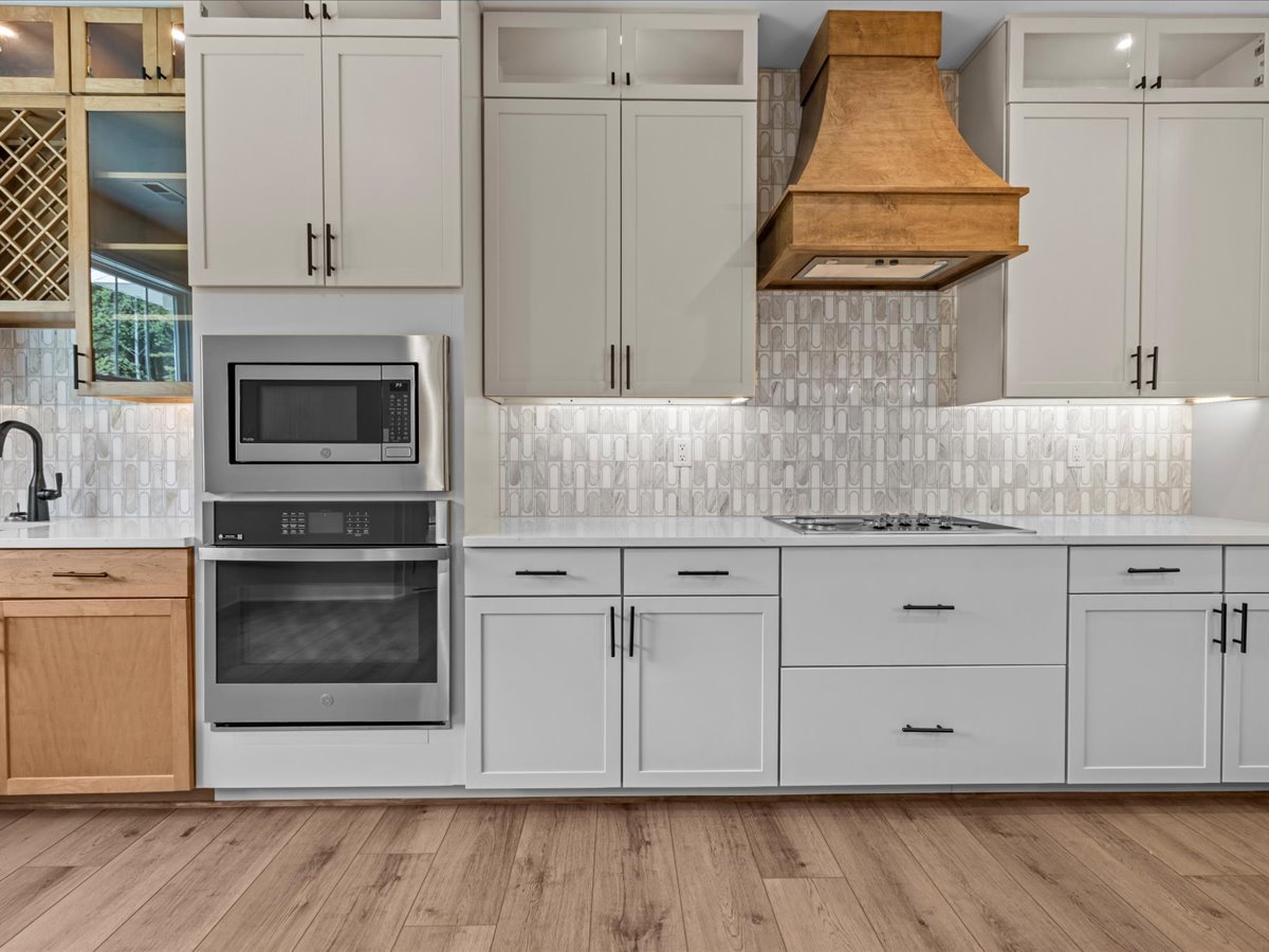 - Beautiful finishes to include full overlay maple cabinets with soft close throughout, quartz counters, farm sink and double ovens in kitchen.